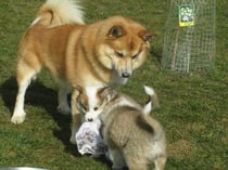 Wir hatten Besuch, viiiel Besuch mit Hund, ohne Hund, mit Kind und ohne Kind. Alle Welpen haben ein Halsband bekommen und Tindra trägt nun ein frühlingshaftes orange, Fenja ist in rot eingekleidet, die kleine Blída Maus in pink und unser Jaki hat ein taupe farbenes Halsband bekommen. Nach anfänglichen, seltsamen Verrenkungen haben sich alle gut an das lästige Ding gewöhnt und laufen nun wie echte Hunde mit Halsband herum.