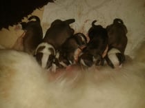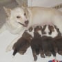 Kurz vor 14 Uhr dann das heiß ersehnte Ereignis - unser erster Austurrikis Welpe wurde geboren - eine Hündin 355 g schwer. Im 2-3 Stunden Takt folgten nun noch 3 Hündinnen und zu guter letzt um 22 Uhr dann der Quotenrüde, alle in rot mit wunderschönen weißen Abzeichen.