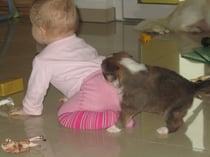 Eine aufregende Woche geht dem Ende zu. Die Kleinen fressen bereits 4xtgl. ihren Babybrei und zum Lösen geht es nun schon in den Garten. Natürlich nicht immer erfolgreich und so hat die Waschmaschine noch Hochsaison.