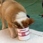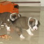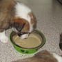 Das Futter hat sich inzwischen vom Babyschlabberbrei zu echtem Hundefutter gemausert- die Kleinen bekommen Trofu, Dose und Rohfleisch sodaß sie sich an alles gewöhnen können und später bei ihren neuen Familien keine Probleme mit einer eventuellen Futterumstellung haben.