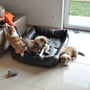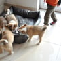 Der Auslauf wurde schon sehr eng und langweilig, sodass die Zwerge fast immer bei uns im Wohnzimmer bzw im Garten toben, schlafen, fressen, spielen, bellen etc.