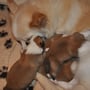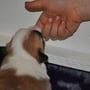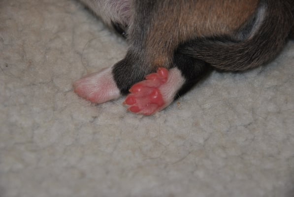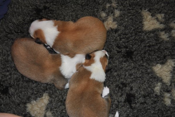 Aus den kleinen Maulwürfen sind nun echte kleine Miniaturhündchen geworden, die bereits ihre ersten Gehveruche hinter sich haben und nun durch die Wurfbox wacklen. Die Augen sind alle offen und auch das Gehör ist bereits bestens funktionierend. Niemand der den Welpenraum betritt bleibt unbemerkt und sofort fiepen, winseln und bellen 6 Babies. Genau... auch ihre Stimme haben die Zwerge entdeckt. Unsere Kinder sitzen nun gerne mal in der Box und schauen den Kleinen bei den ersten zaghaften Spielveruchen zu oder lassen sich von den kleinen Näschen beschnuppern. Duna hat ihren ersten Spaziergang hinter sich und geniesst wieder ihr Leben in der Familie. Auch hat sie Ylvie und den Katzen bereits erlaubt ein paar Blicke auf die Bande zu werfen.