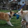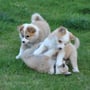 Duna erzieht die Kleinen immer wieder und Ylvie ist die absolut beste Tante- sie spielt was das Zeug hält und oft passiert es nun dass die ganze Meute laut bellend durch den Garten
