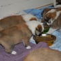 Die Welpen wurden das erste Mal entwurmt und auch das erste Welpenbreischlabbern war angesagt. Diesmal doch um eine Woche eher als bei den A´s, aber das Sextett ist doch gefräßiger als die Viere im letzten Wurf. Duna ist sehr mager ist und auch die Welpen waren teilweise sehr unruhig in den letzten Tagen, sodass ich den Versuch mit Rindzubereitung gestartet habe. Was soll ich sagen...... in 2 Minuten war alles weg- ein sicheres Zeichen, dass es nun soweit ist mit der Beifütterung zu beginnen.