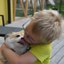 sodass wir nun 3x täglich den Garten geniessen. Da toben dann 9 Hunde und 2 Kinder herum und machen Unfug. Die Sandkiste wurde eforscht und auch der erste kleine Ausflug in Nachbars Garten stand